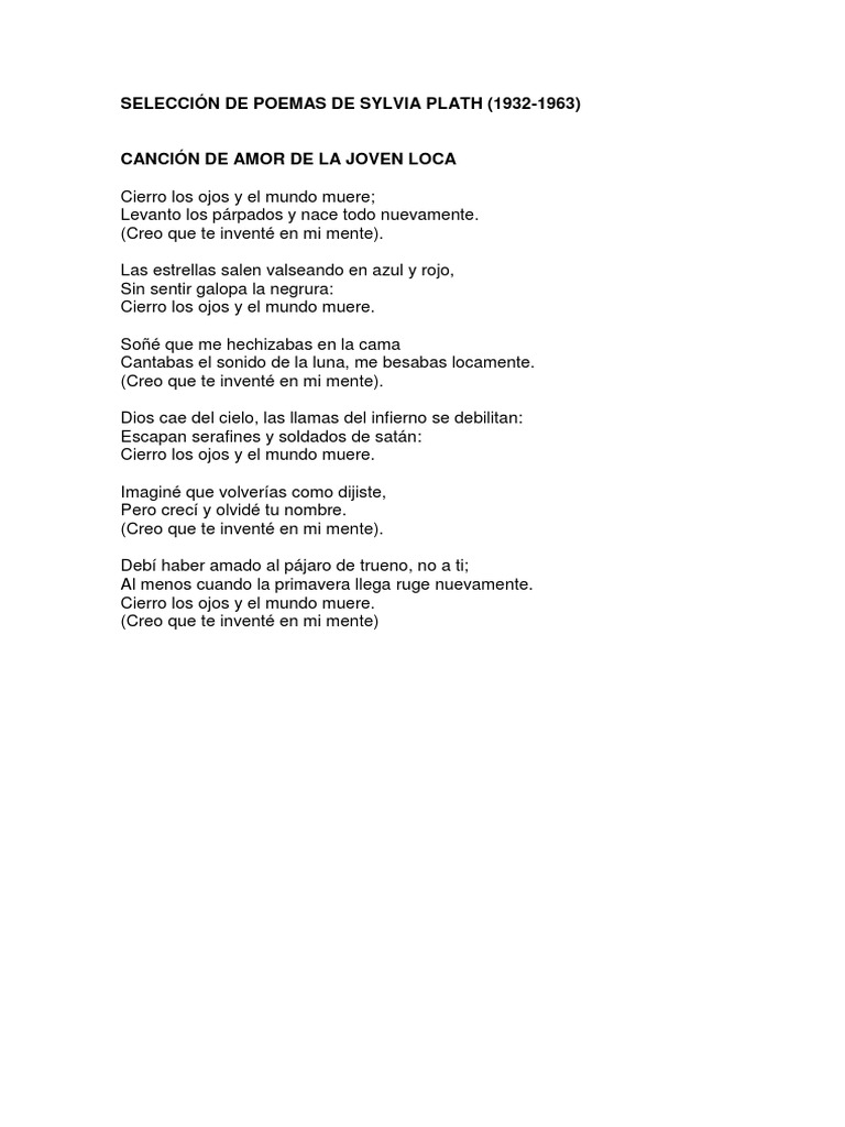 42+ Sylvia Plath Poemas En Español Images. Recibe gratis un poema clásico semanal por correo electrónico. They were mostly imitation exercises of poets she admired such as dylan thomas, w.