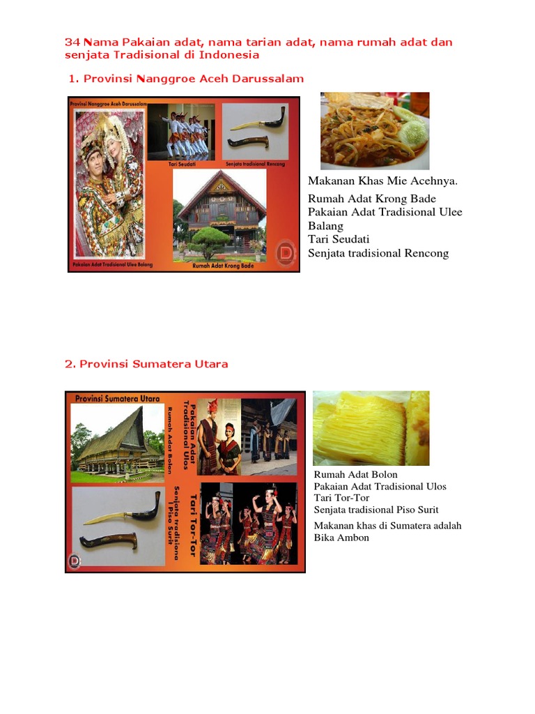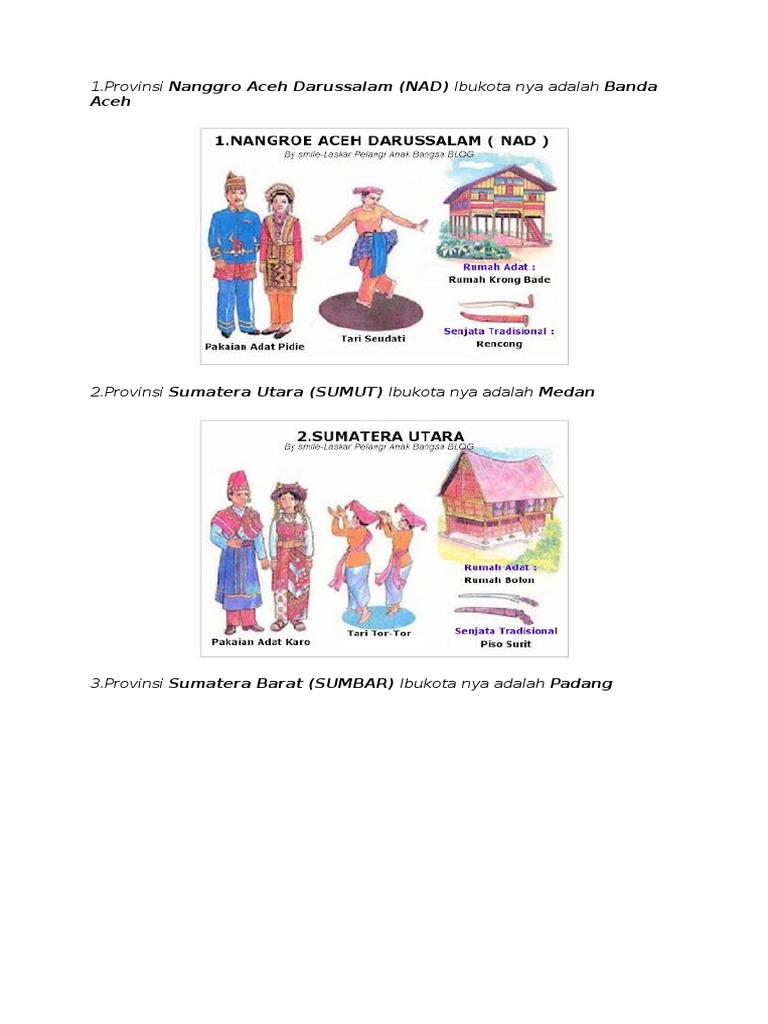Rumah adat gadang pakaian adat tradisional bundo kanduang tari payung senjata tradisional karih. Rumah adat nangroe aceh darussalam atau biasa dikenal dengan rumah adat kronge bade berasal dari provinsi paling barat di indonesia, yaitu. Dinding rumah terbuat dari kayu dan dihiasi dengan lukisan. Rumah limas pakaian adat :
