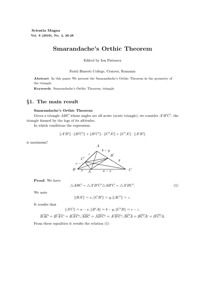 The pythagorean theorem establishes that in a right triangle the square of the length of the hypotenuse. Yes, triangle proportionality theorem isn't particularly exciting. Theorem 38 (triangle inequality theorem): Euclid's congruence theorems are calling them congruence theorems is anachronistic, since euclid did not explicitly use the concept of.